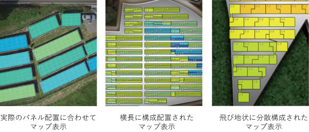 アレイ(架台)の構成が分散配置されていても、 その通りの表現ができます。